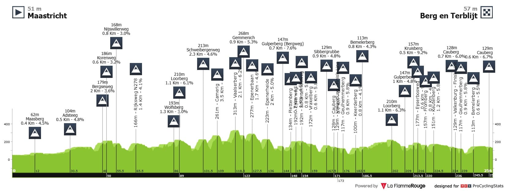 256 quilómetros com inúmeras subidas curtas — leia-se inúmeras oportunidades para atacar a corrida — nesta que acaba por ser a corrida mais soft em termos de altimetria neste tridente das Ardenas. É uma corrida de endurance onde a gestão do esforço é fulcral para ter sucesso. É preciso chegar aos últimos 50 quilómetros com capacidade para atacar ou responder aos ataques que se vão suceder quilómetro sim quilómetro sim.