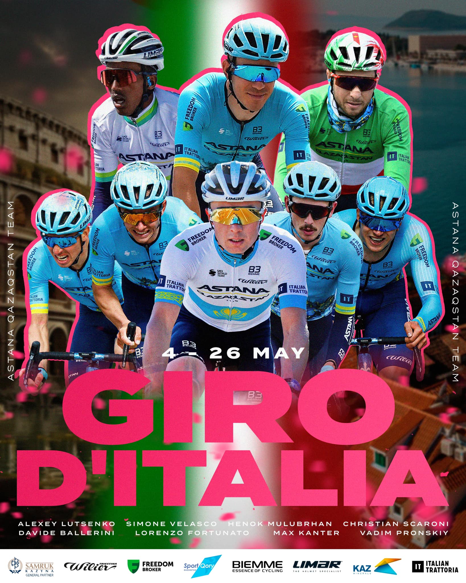 Mas a equipa da Astana não se fica por aqui, bem pelo contrário. Lorenzo Fortunato é um trepador de qualidade que sabe o que é vencer no Giro e que, tendo em conta as aparentes aspirações de Lutsenko para a GC, pode muito bem apostar em vitórias em etapa e, quem sabe, na camisola da montanha.