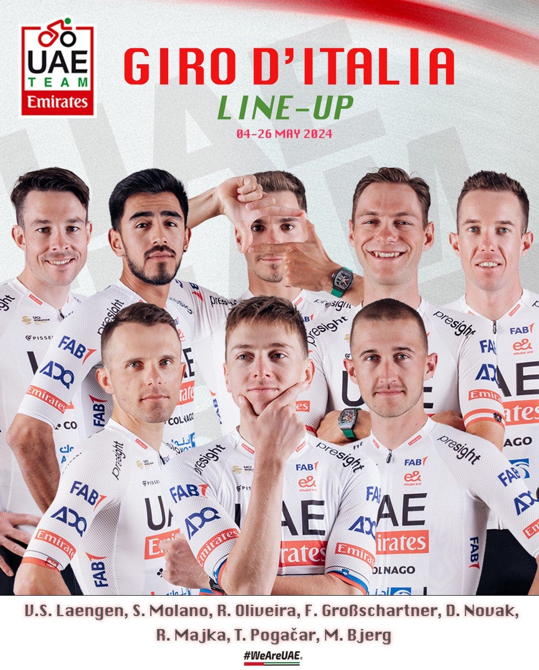 E é isto. Não há muito mais a acrescentar, é tudo do Tadej. E o facto de a Emirates trazer apenas os três gregários acima mencionados diz muito sobre a expectativa de domínio do esloveno.