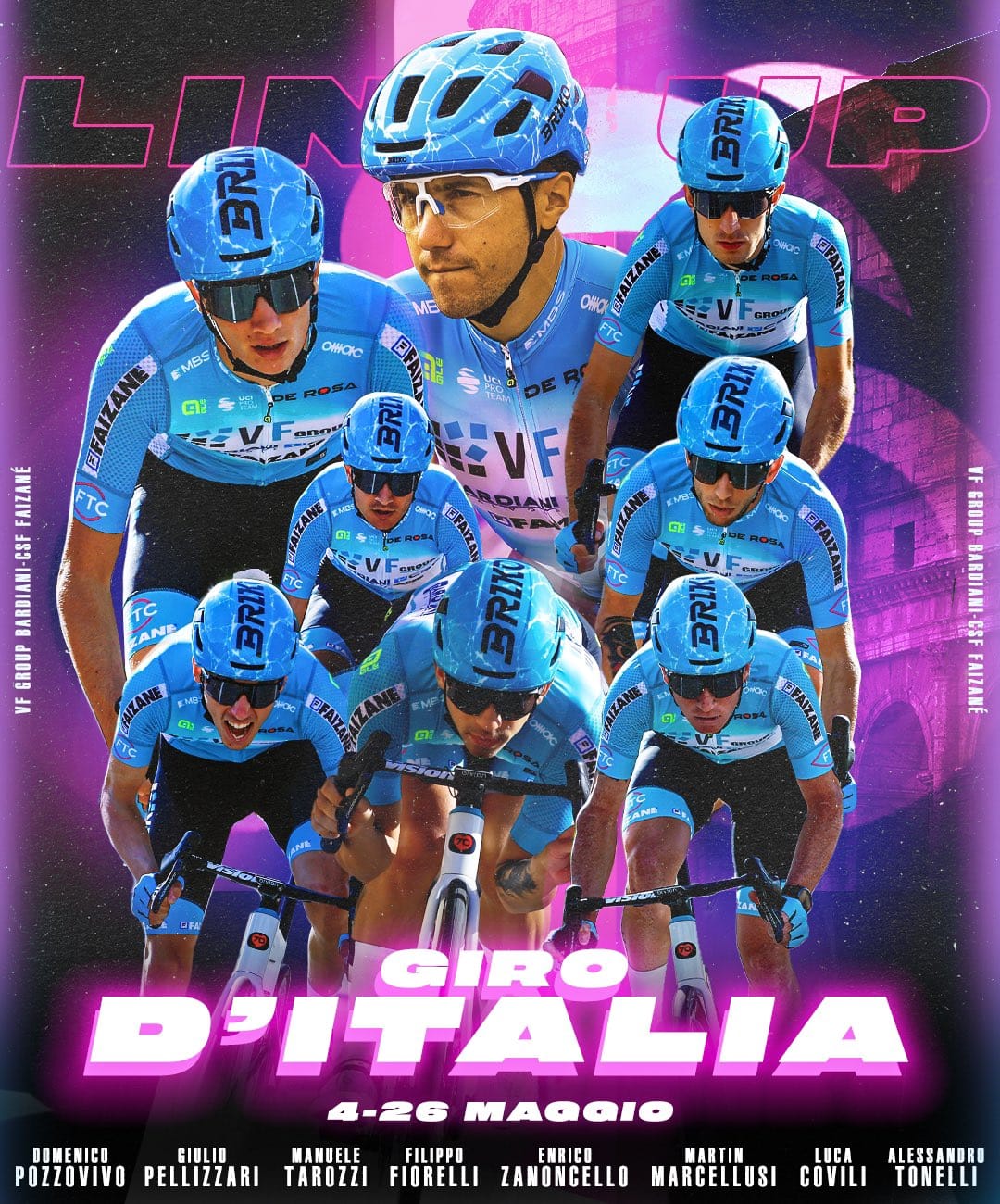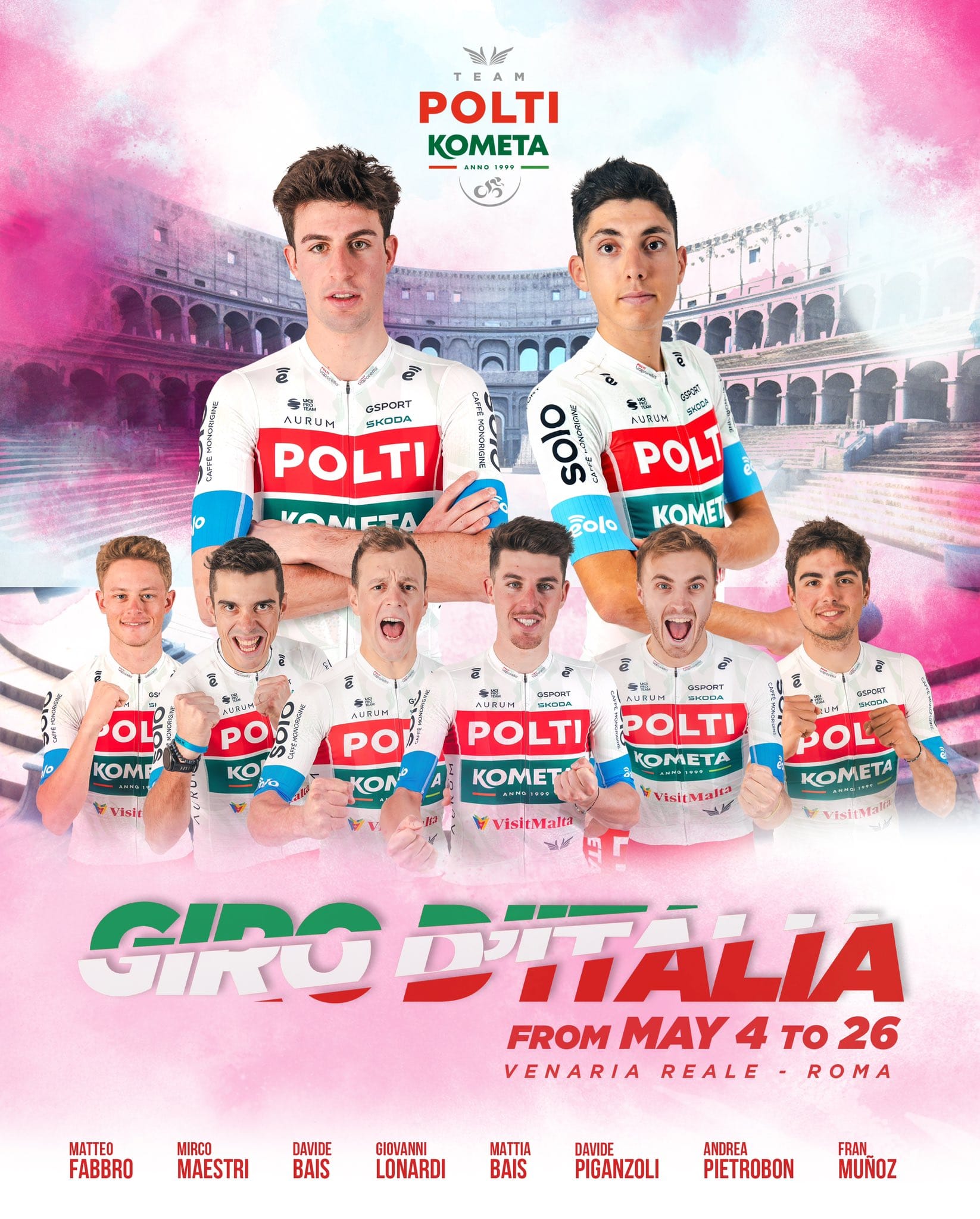 Matteo Fabro é, provavelmente, o líder da Polti. Depois de quatro anos na BORA, o trepador italiano traz experiência à equipa e vontade nas pernas. E ainda, como não podia deixar de ser, teremos de contar com os manos Bais para não passarem um quilómetro junto ao pelotão — só vão correr nas fugas e são naturais candidatos ao prémio combatividade.
