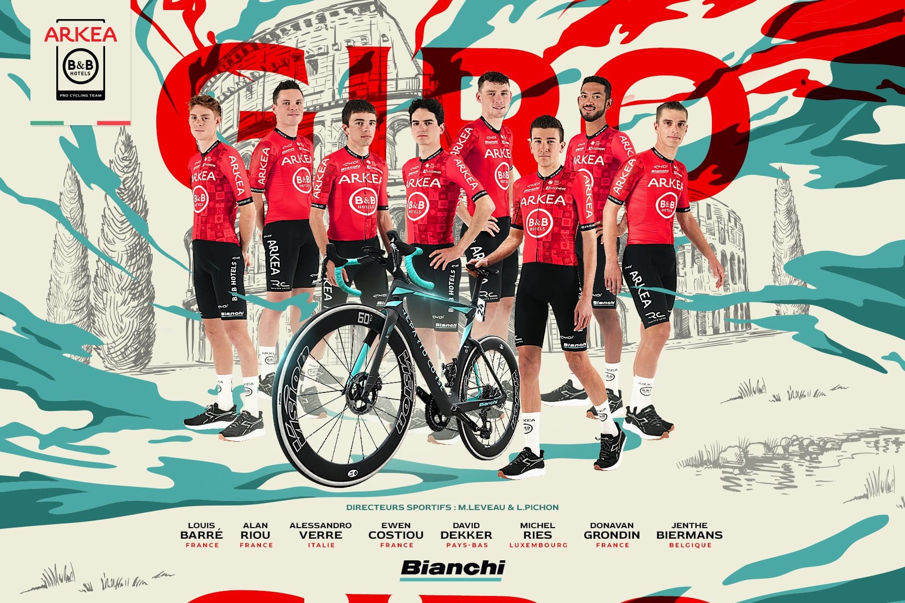 O oito que a Arkéa traz ao Giro é, não há como esconder, fraquinho. Jenthe Biermans e David Dekker são dois homens rápidos que vão tentar sacar um ou outro top-10 — mais do que isso seria uma tremenda surpresa. A última vitória de nível World Tour do esquadrão francês foi no dia 11 Março de 2022, quando Warren Barguil venceu em Fermo, na quinta etapa do Tirreno-Adriatico. Em 2024, Costiou e Biermans – ambos presentes — até já venceram, mas falamos de vitórias em provas de menor dimensão, em solo francês, onde a Arkéa está como peixe na água.