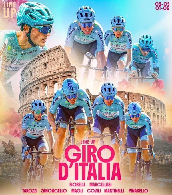 A equipa mais italiana do Giro. Um bloco que mistura a experiência e a irreverência de corredores que conhecem bem estas estradas. O objetivo é claro: vencer uma etapa. Filippo Fiorelli, na média montanha, e Enrico Zanoncello, nas etapas planas, são os destaques deste conjunto de pinazzis. O primeiro é sempre um candidato a vestir alguma das maglias na fase inicial.