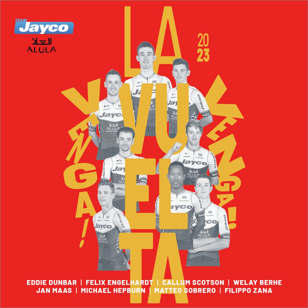A Jayco vai atacar a geral da Vuelta com a mesma dupla do Giro. Eddie Dunbar, 7.º no Giro e recentemente 7.º na Polónia, tem feito por merecer a confiança da equipa que volta a apostar nele para três semanas. Para repetir o top-10 — ou algo mais — conta com o suporte de Filippo Zana. O italiano brilhou na terceira semana do Giro, vencendo no Val di Zoldo, e entretanto conquistou a Volta à Eslovénia.