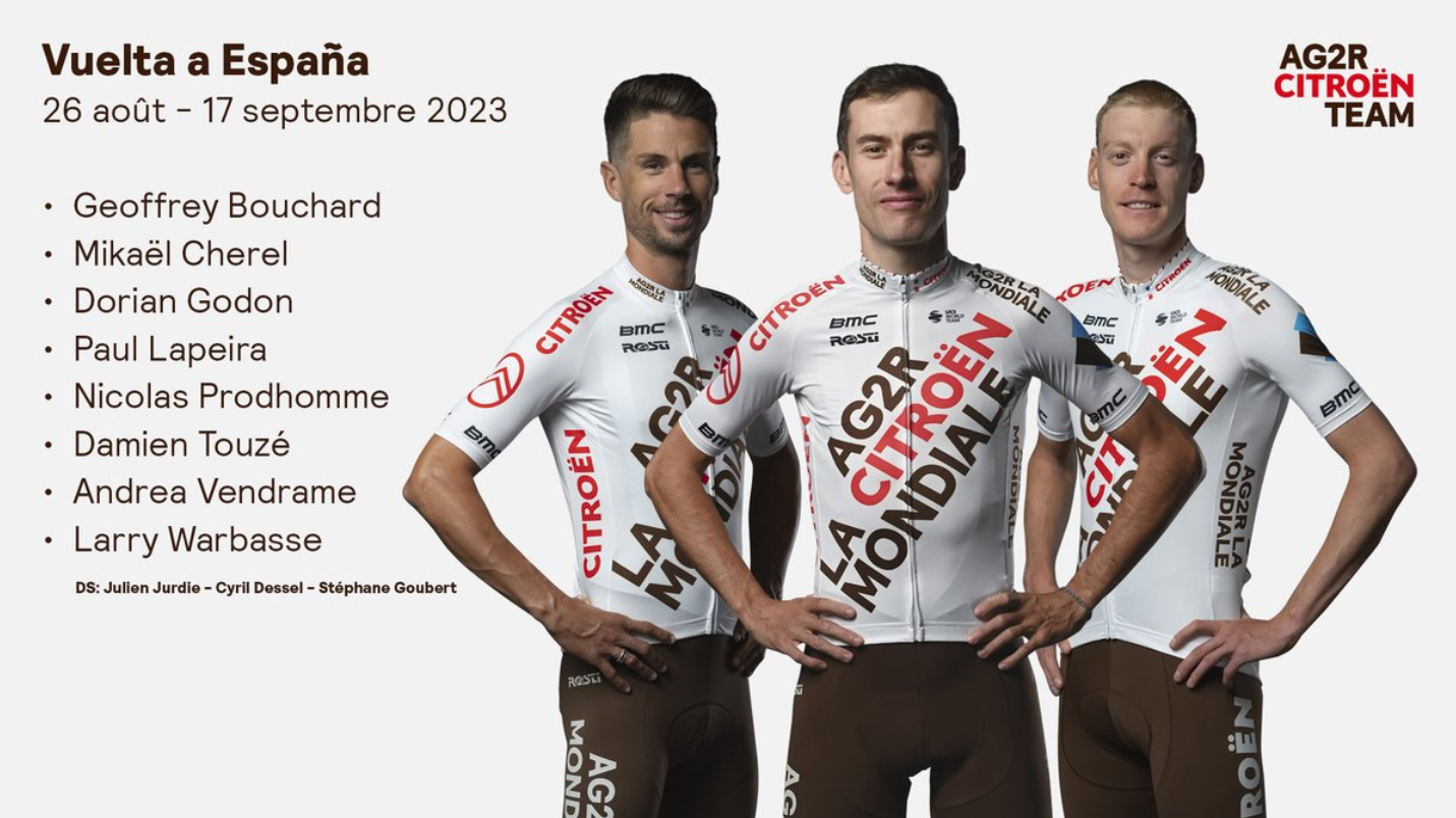 Mikaël Cherel faz a sua última grande volta da carreira. O veterano de 37 anos, um histórico da AG2R, vai encerrar a sua carreira no final do ano. Por outro lado, Paul Lapeira faz a sua estreia em três semanas. Atenção a este miúdo, foi 4.º na Polynormande há uns dias. Damien Touzé e Larry Warbasse completam o bloco da equipa francesa.