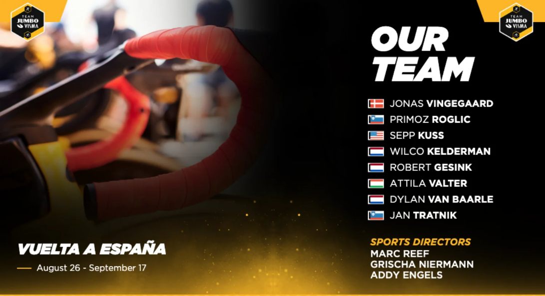 A Jumbo-Visma vai tentar o feito inédito no ciclismo masculino de tentar conquistar as três grandes voltas no mesmo ano. Primož Roglič conquistou o Giro pela primeira vez e Jonas Vingegaard fez o bis no Tour. Ambos estão a fazer uma temporada fantástica: o esloveno venceu todas as provas em que participou — Tirreno, Catalunha, Giro e Burgos — e o dinamarquês só falhou o triunfo no Paris-Nice — arrasou no Gran Camiño, País Basco, Dauphiné e Tour.