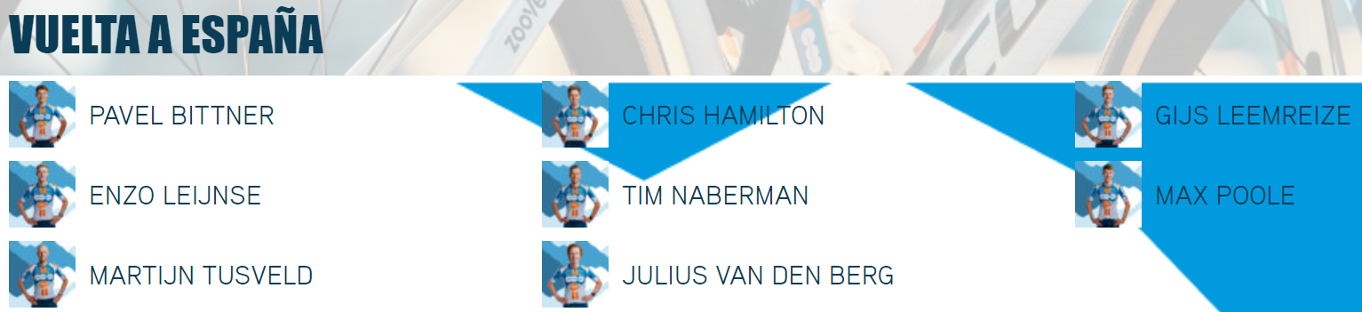 Quinten Hermans tem um perfil para se destacar em etapas de média montanha com final inclinado, mas a forma recente tem sido muito irregular. Xandro Meurisse pode tentar a sua sorte nas fugas e Luca Vergallito faz a sua estreia em grandes voltas.