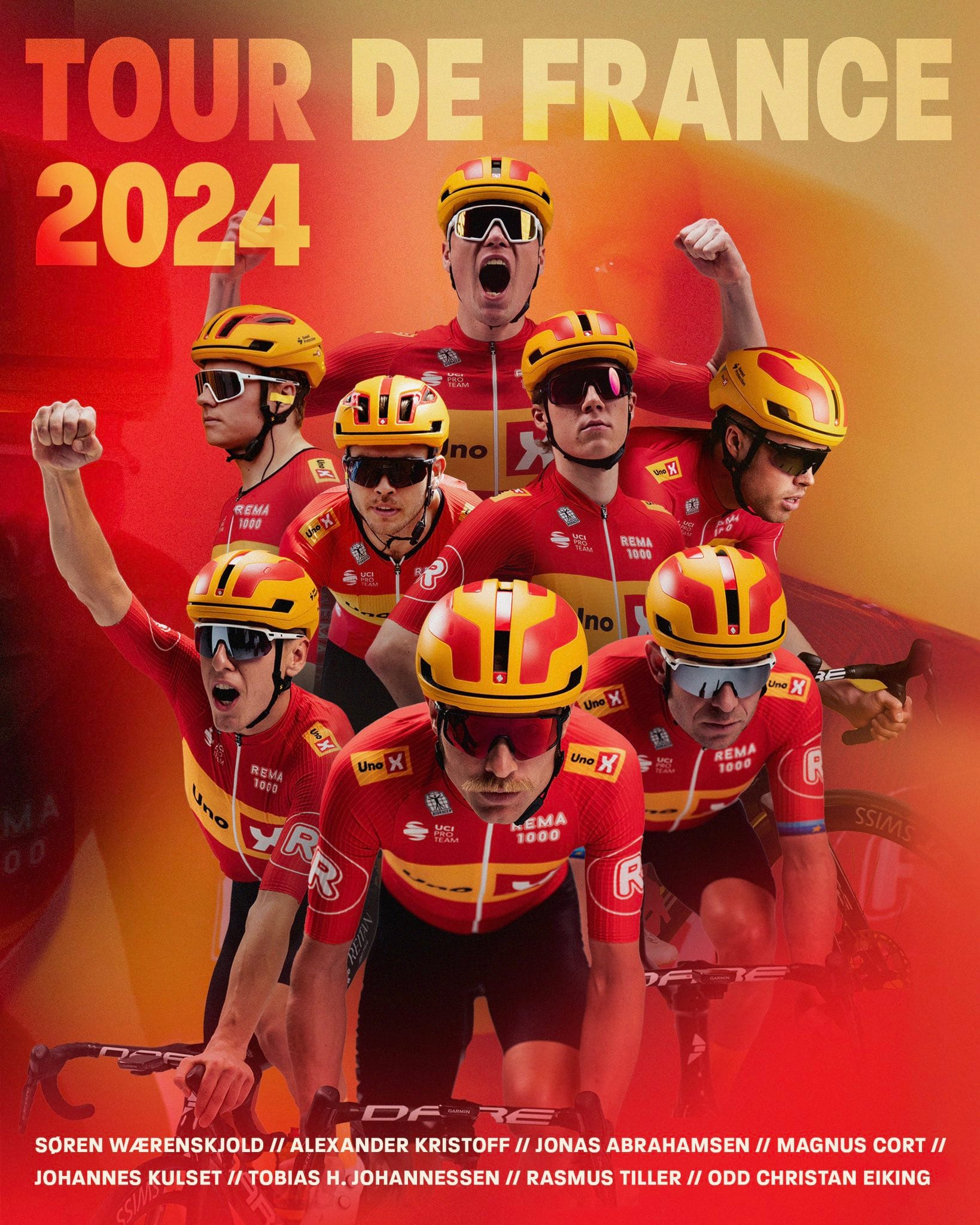 O conjunto nórdico chega motivadíssimo com a vitória de Magnus Cort no Critérium du Dauphiné, a primeira de sempre da equipa no World Tour. O corredor dinamarquês, o único no meio de sete noruegueses, é talvez a figura maior da equipa, a par do veterano Alexander Kristoff — o norueguês continua a um bom nível e já leva três triunfos em 2024. Lançado por Søren Wærenskjold (um protegido do falso plano!), a 5.ª vitória no Tour não é um objetivo inalcançável.