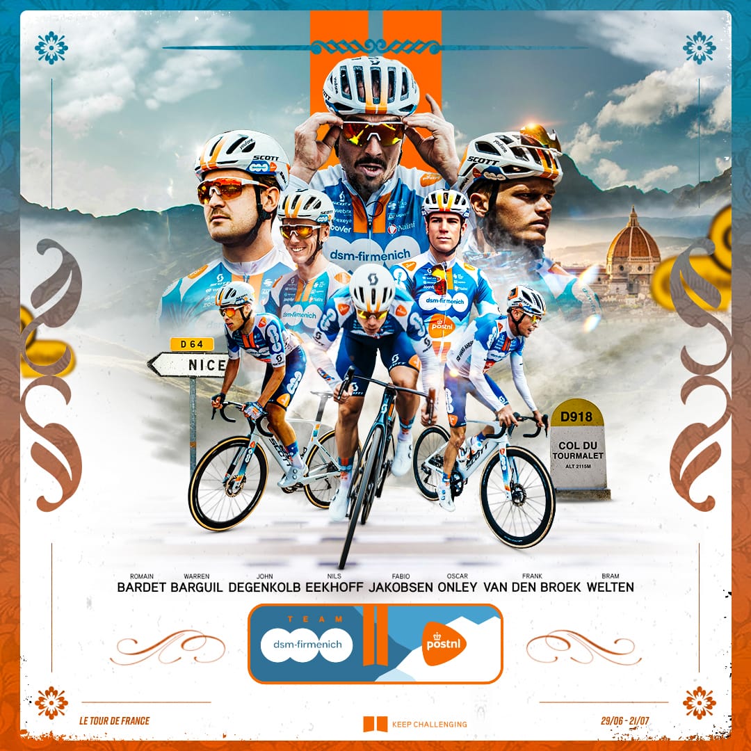 Para os sprints a aposta é em Fabio Jakobsen, que não está a ter um início fácil na dsm-firmenich. O neerlandês sabe o que é vencer no Tour e conta com Bram Welten, Nils Eekhoff e o capitão John Degenkolb para voltar a levantar os braços.