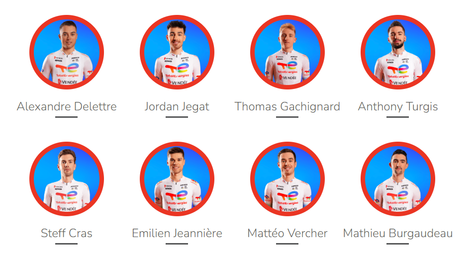 Bryan Coquard e o candidato a ciclista de culto Alexis Renard têm a responsabilidade de somar pontos UCI nas chegadas ao sprint, lançados por Damien Touzé. Para as fugas há Ion Izagirre, Benjamin Thomas e Dylan Teuns. Emanuel Buchmann pode tentar aquele top-20 na geral.