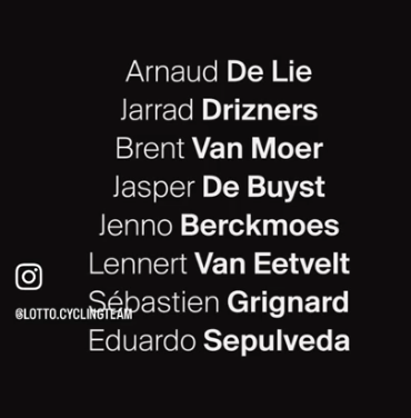 O enxame conta ainda com Tiesj Benoot, o habitué, Victor Campenaerts, o retornado, e Edoardo Affini, o estreante, que vem substituir o desaparecido Christophe Laporte.