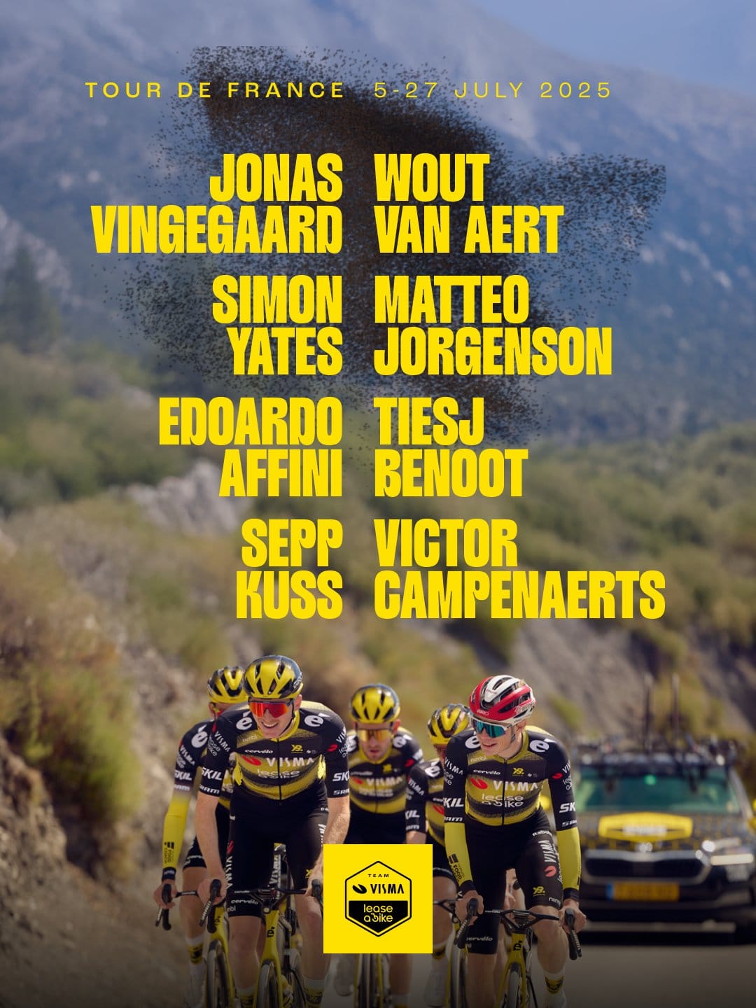 Mais um equipón da Visma com foco total na maillot jaune. Jonas Vingegaard está pronto para o quinto mano-a-mano e desta vez sem percalços relevantes, ao contrário do que sucedeu na última temporada. A forma demonstrada no Dauphiné foi óptima — cinco segundos lugares em oito etapas (!) —, ainda assim insuficiente para derrotar o seu arqui-rival.