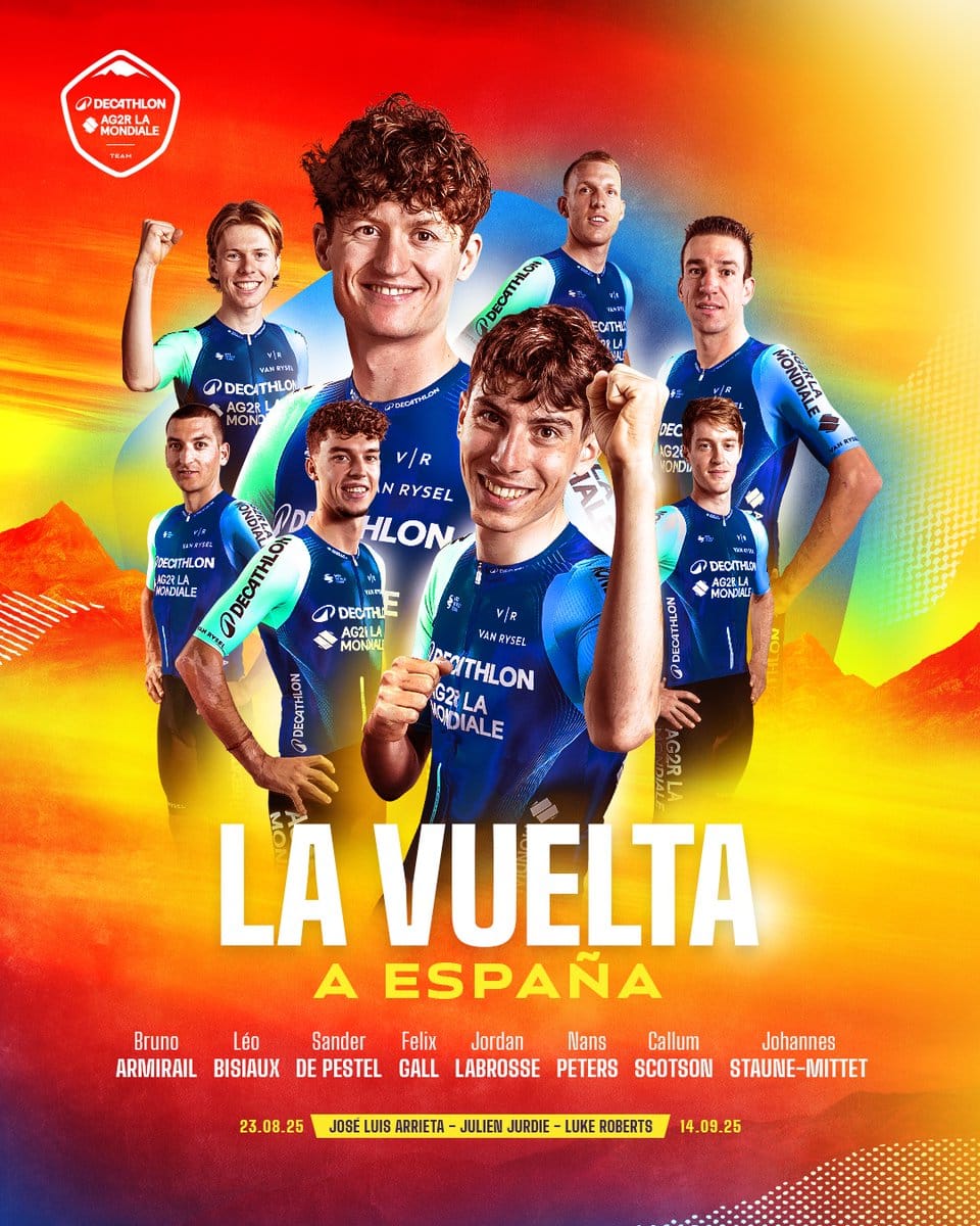 A Decathlon já soma 21 vitórias em 2025 mas apenas cinco são fora de casa. Dessas cinco a última foi em Burgos, por um talento francês que vai dar que falar nos próximos tempos: Léo Bisiaux, atleta da formação que subiu este ano ao plantel principal. Juntamente com Johannes Staune-Mittet, vão dar uma ajuda preciosa nas montanhas ao Felix Gall. O trepador austríaco terminou o Tour no top-5 e quer repetir a façanha aqui. Sem pressão, se as coisas não estiverem a correr de feição aponta para as fugas ou camisola da montanha.