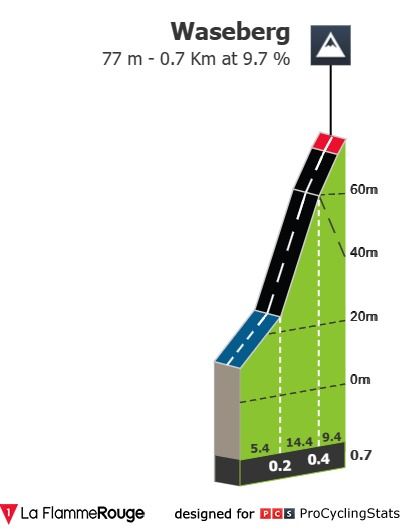 Quando os mesmos voltarem para a cidade alemã e estiverem a passar junto à margem norte do rio Elbe irão sentir a grande dificuldade deste percurso. Com percentagens que chegam aos 16% a certa altura e já inserido no circuito final dentro de Hamburgo, mais precisamente no bairro de Blankenese, apresento-vos o Waseberg.