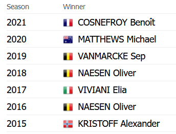 Benoít Cosnefroy — Costuma andar bem nesta fase da época, é dos mais explosivos do pelotão em pequenos topos e venceu o ano passado. Apesar da forte concorrência, o francês quererá defender o titulo.