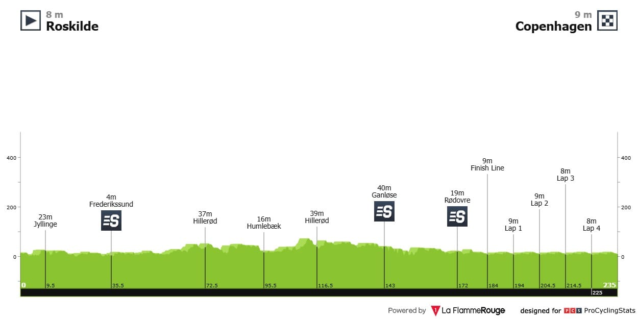 São cerca de duzentos e trinta e cinco quilómetros sempre em plano. De Roskilde a Copenhaga o percurso é sempre feito ao redor da capital dinamarquesa e a terminar com um circuito bastante técnico bem no coração da cidade.