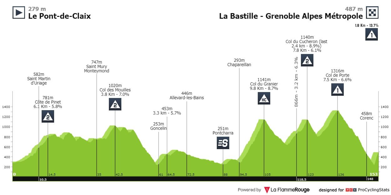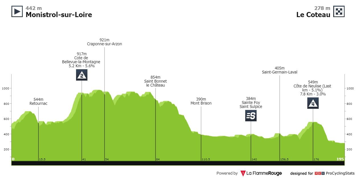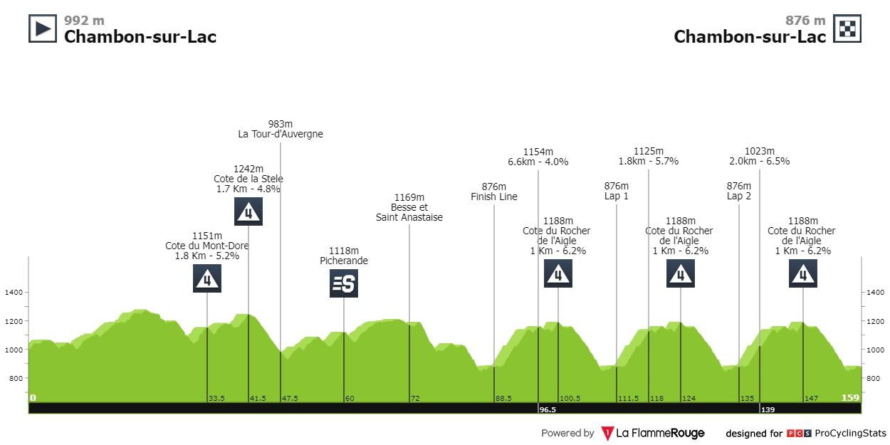 Etapa 1 — Etapa relativamente curta de sobe e desce, com cinco 4ªs categorias, as últimas três em circuito. Nem todos os sprinters — também não há assim tantos — vão chegar e a camisola amarela está em jogo. Pode dar fuga.