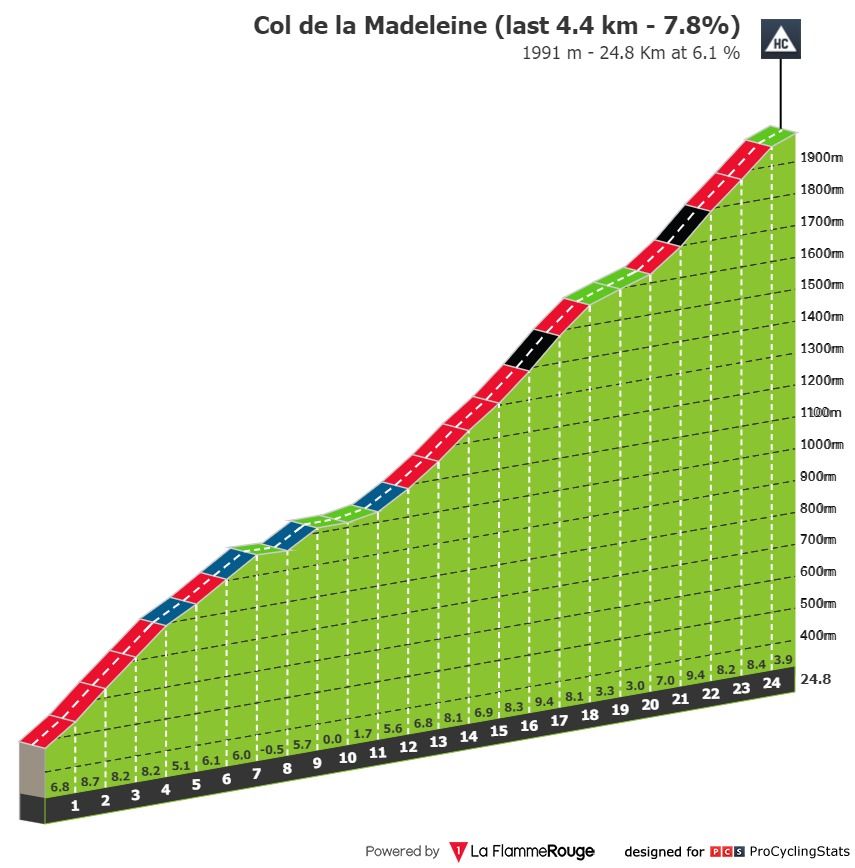 Depois de chegarem ao topo da Col de la Madeleine ainda faltam 75 quilómetros para a meta.