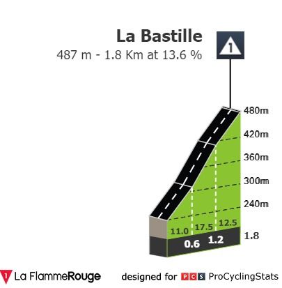 O Mur de Huy é um menino ao lado da La Bastille. Os últimos 1.8 quilómetros do Dauphiné, têm 13.6% de pendente média.
