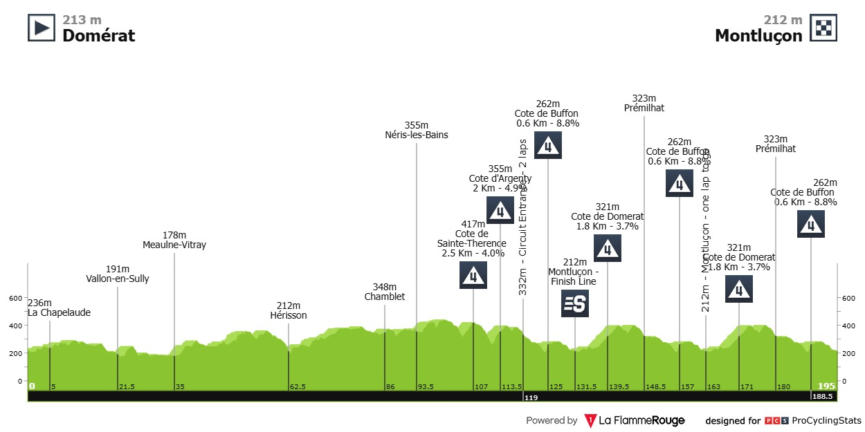 Etapa 1 — É sprint? Não sei. Gosto muito deste perfil para uma etapa de abertura, onde os puncheurs e os homens rápidos mais versáteis podem lutar pela primeira amarela. Não devem existir diferenças grandes mas um ataque na última passagem por Buffon pode vingar.