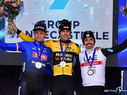 Esperava um duelo a três, e agora? Espero um duelo a dois, mais uns dez até ao Oude Kwaremont ou ao Karnemelkbeekstraat para decidirem quem ganha. Se passa Mathieu van der Poel sozinho para a vitória, ou se passa com Wout van Aert, para a vitória do belga ao sprint e no fundo, espero uma corrida muito dominada pela Team Visma | Lease a Bike, que traz uma equipa forte para esta prova e duas boas cartas para jogar. Além do Wout, trazem ainda Jorgenson, que está em grande forma e também se destaca nestas provas. Têm de tentar tudo para vencer a prova.