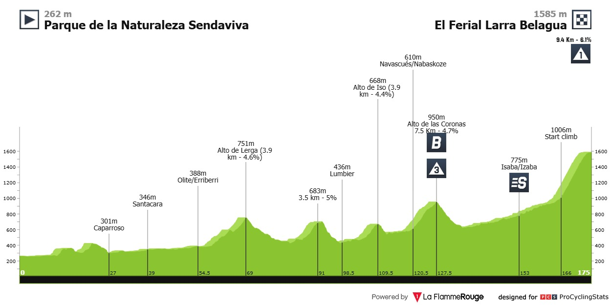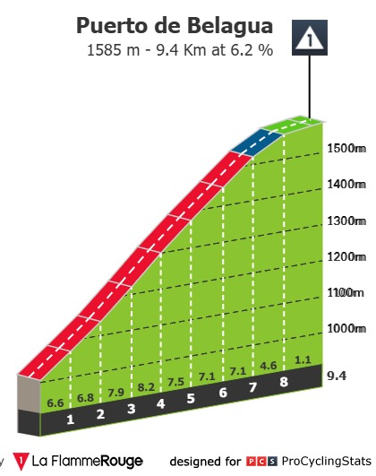 Puerto de Belagua é provavelmente a subida mais difícil da Vuelta até agora (embora não se compare com o que está para vir) e apenas vê a sua pendente média baixar porque os últimos dois quilómetros são feitos num esbelto, perfeito e sensual falso plano. Os primeiros 7 rondam sempre os 7%, o que, como já vimos nesta prova, pode chegar para fazer diferenças assim exista vontade.