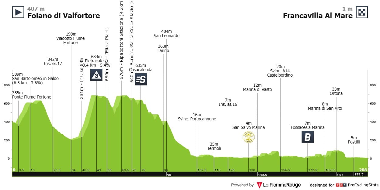 Início de tirada com três subidas, uma delas categorizada, e depois serão praticamente cem quilómetros sempre a rolar.