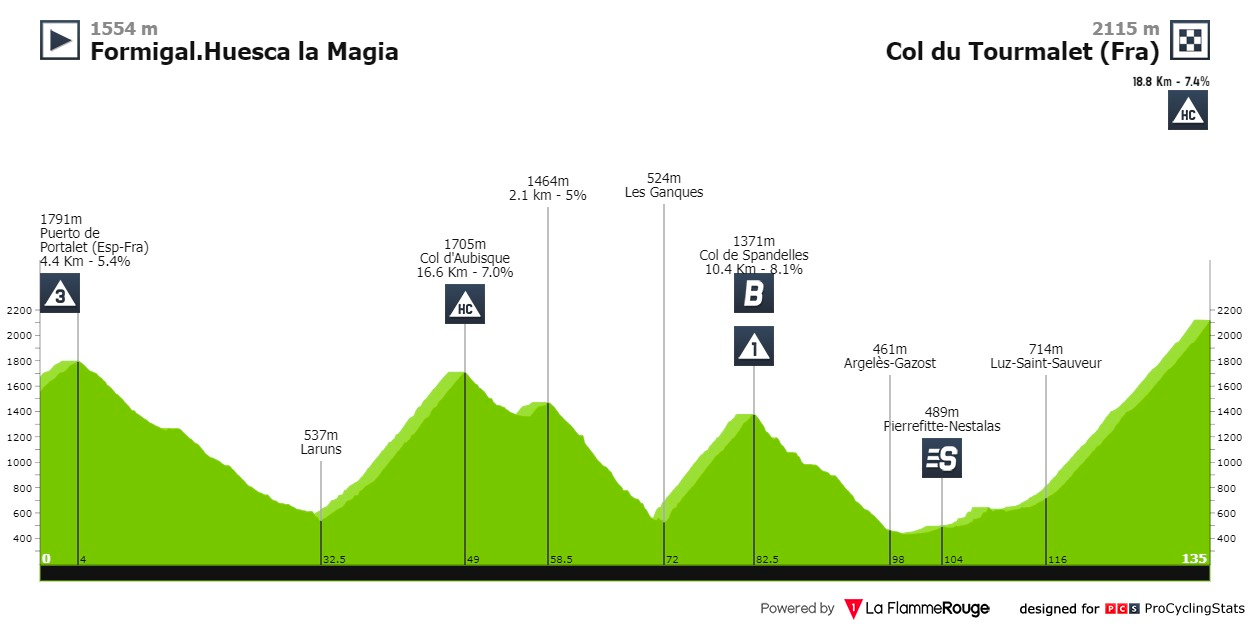 E por fim, o Col du Tourmalet. Uma das subidas mais míticas da Volta a França. Quase 20 quilómetros, com 7.4% de inclinação, que parece que nunca mais acabam e onde já vimos batalhas épicas como a de Andy Schleck e Alberto Contador. Aqui não dá para se esconderem, quem estiver mal vai levar muito tempo.
