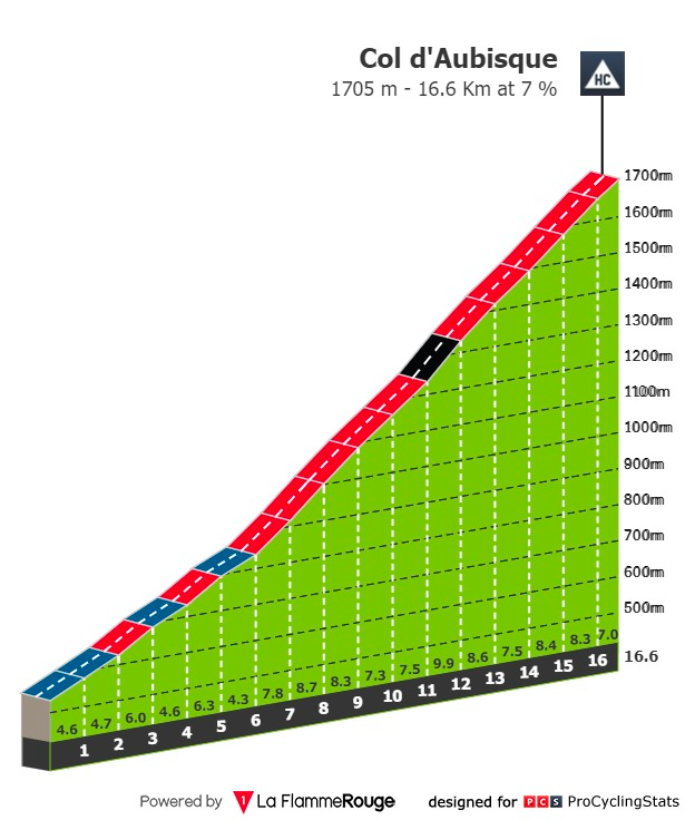A etapa quase toda ela em solo francês. A primeira subida de categoria de especial é o Col d'Aubisque. 16.6 quilómetros a 7% de inclinação a moer as pernas do pelotão.