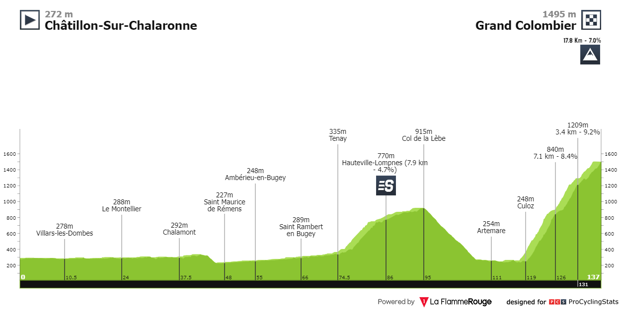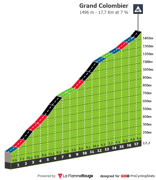 O Grand Colombier será o local para decisões na geral (ou não), serão praticamente 18 quilómetros sempre a subir até aos 1496 metros de altitude. Isto promete.