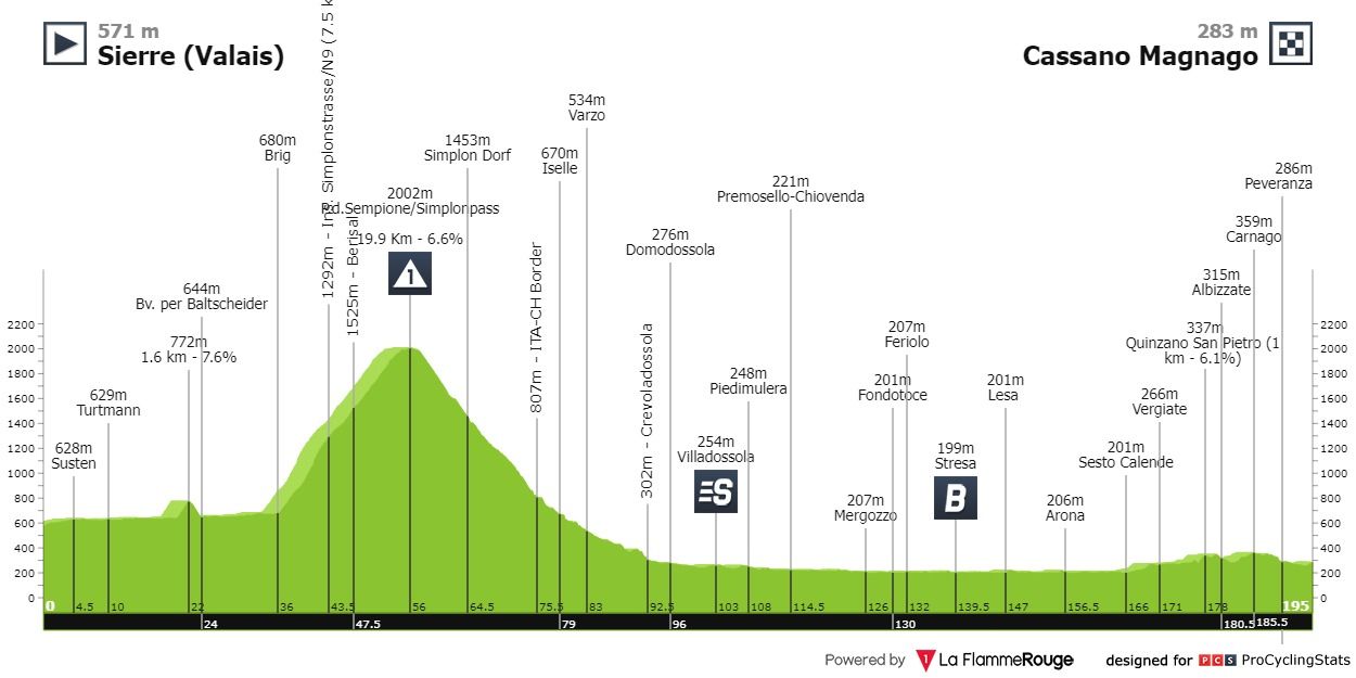O dia de amanhã começa praticamente com uma subida de primeira categoria em que teremos 19 quilómetros a 6.6%. Depois disso, são praticamente 100 quilómetros planos até à meta, tirando uma ascensão de 1 quilómetro a 6.1%, a Quinzano San Pietro.