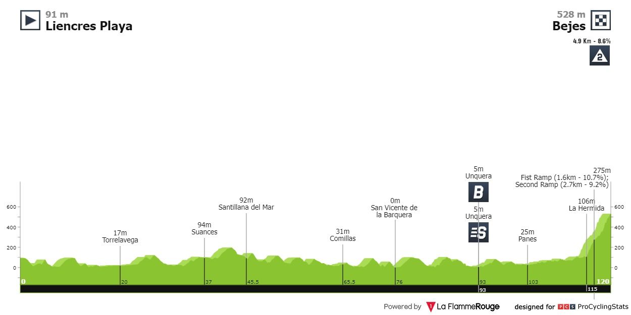 É das etapas mais curtas desta edição da Vuelta (120km) e possivelmente mais secante em termos de emoção, visto que será apenas no final que teremos animação.