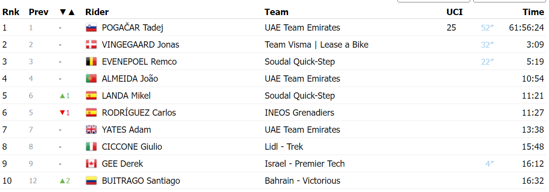 Esse momento não aconteceu e após uma aceleração de Vingegaard a pouco mais de 5 quilómetros da meta, Pogačar percebeu que estava claramente mais forte e arrancou a solo para uma confortável e autoritária vitória sem sequer haver um esboço de reação por parte do seu maior rival.