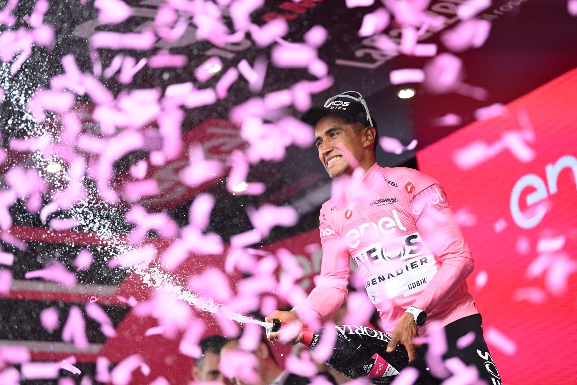Na meta, o colombiano da INEOS foi o mais forte ao sprint, sendo Schachmann segundo e Poga terceiro.
