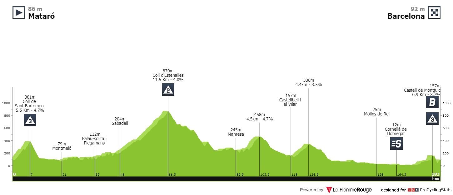 Difícil de perceber o que pode dar aquela subida de Montjuic. Vai depender muito do que as equipas que irão lutar pela geral vão querer tirar já desta primeira etapa a seguir ao contrarrelógio.
