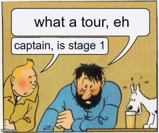 Antes das decisões finais, espero uma fuga com o Benjamim mas sem grande esperança. A altura das fugas, nesta primeira semana, chegará, mas não já. Alpecin sabe que é dia de alimentar a sua estrela maior e de lhe ceder a Maillot Jaune, por isso vamos diretos ao quimporta.
