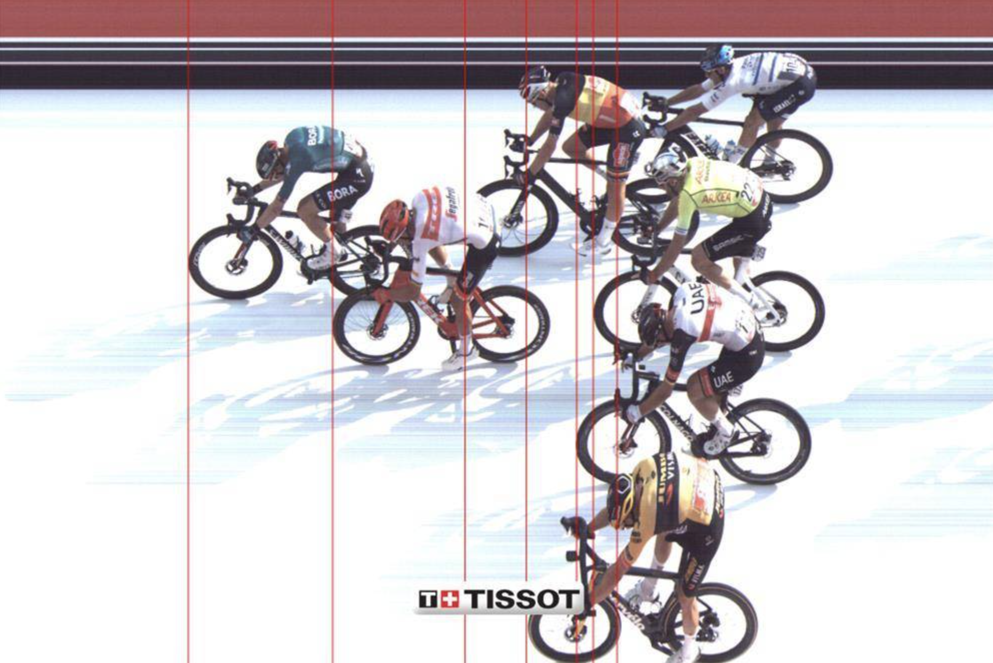 A subir: Sammy + Danny - o melhor lançador do mundo a entregar a etapa ao seu sprinter. Mads Pedersen - primeiro no sprint intermédio e segundo no final. Teunissen - passou para a liderança sendo quarto no final.
