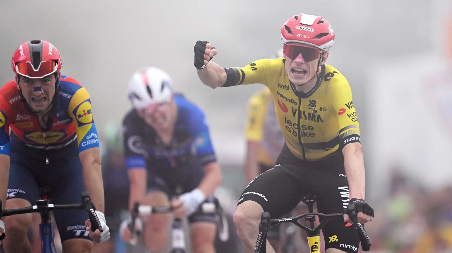 Ciccone foi o primeiro a arrancar, Vingegaard seguiu na sua roda e conseguiu meter uma acima para ultrapassar o italiano em cima da meta. Vitória autoritária do dinamarquês. Agora boa sorte para lhe tirarem a roja.