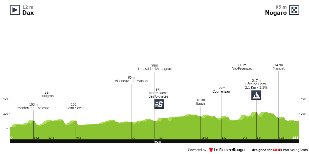 Mais uma etapa plana do cardápio da Volta à França. Pelo meio há um sprint intermédio e uma contagem de quarta categoria (Côte de Demu: 2.1 quilómetros a 3.3%) já inserida nos últimos 35 quilómetros — zona essa que apresenta alguns montes; uma espécie de sobe e desce final com pouca inclinação. A ameaça de chuva é baixa, o céu deve estar parcialmente nublado e o vento deve estar curto.