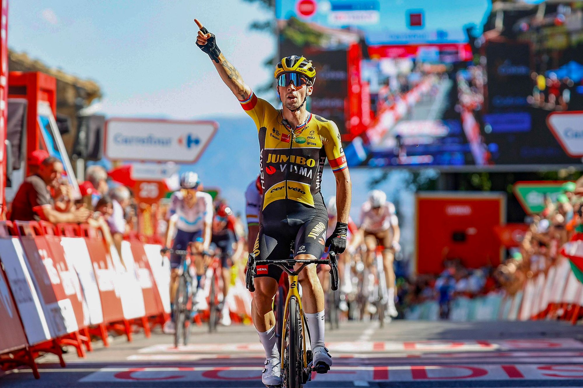 Primeira etapa com algumas dificuldades e primeiras questões respondidas. Roglic está bem e recomenda-se. Chega à Roja e acaba o carrossel dentro da Jumbo, a camisola chegou ao seu dono.