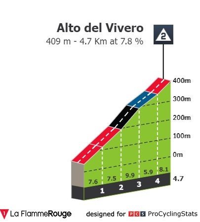 Falamos do Alto del Vivero, que faz a sua 4º aparição na Vuelta nos últimos 11 anos, sempre colocada na fase final da corrida a caminho de Bilbao e apesar de nunca ter causado grandes diferenças na geral, teve vencedores ilustres como Igor Antón (2012) e Phillipe Gilbert (2019). Os seus 4,7 km a 7,8% incluem um km a 9,9% e já este ano marcaram presença na Volta ao País Basco (ganhou Dani Martinez) e no Circuito de Gexto (ganhou Juan Ayuso).