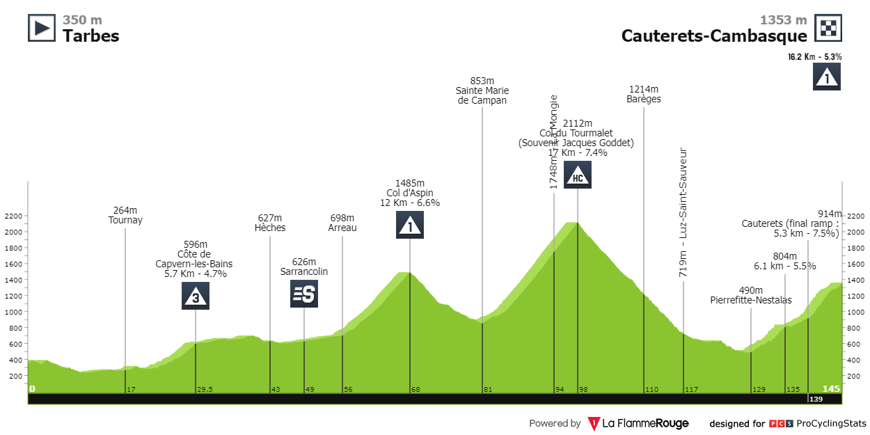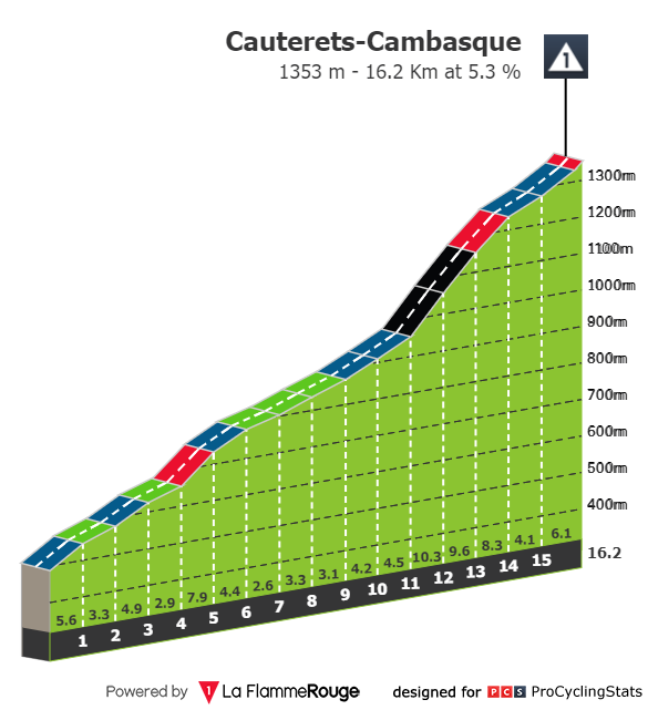 Depois de 30 quilómetros a descer lá aparece a derradeira subida: a Cauterets-Cambasque. Aquele muro de dois quilómetros a 10% antes dos 3 quilómetros finais vai fazer sofrer até quem está no sofá.
