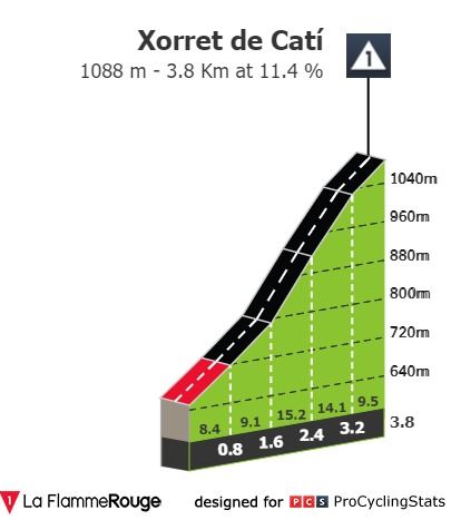Em termos da luta entre os homens da geral, os ataques vão surgir apenas no muro de Xorret de Catí mas vão dar para fazer diferenças. Lenny Martínez e Sepp Kuss estão separados por apenas 8 segundos, pode haver duelo pela roja.