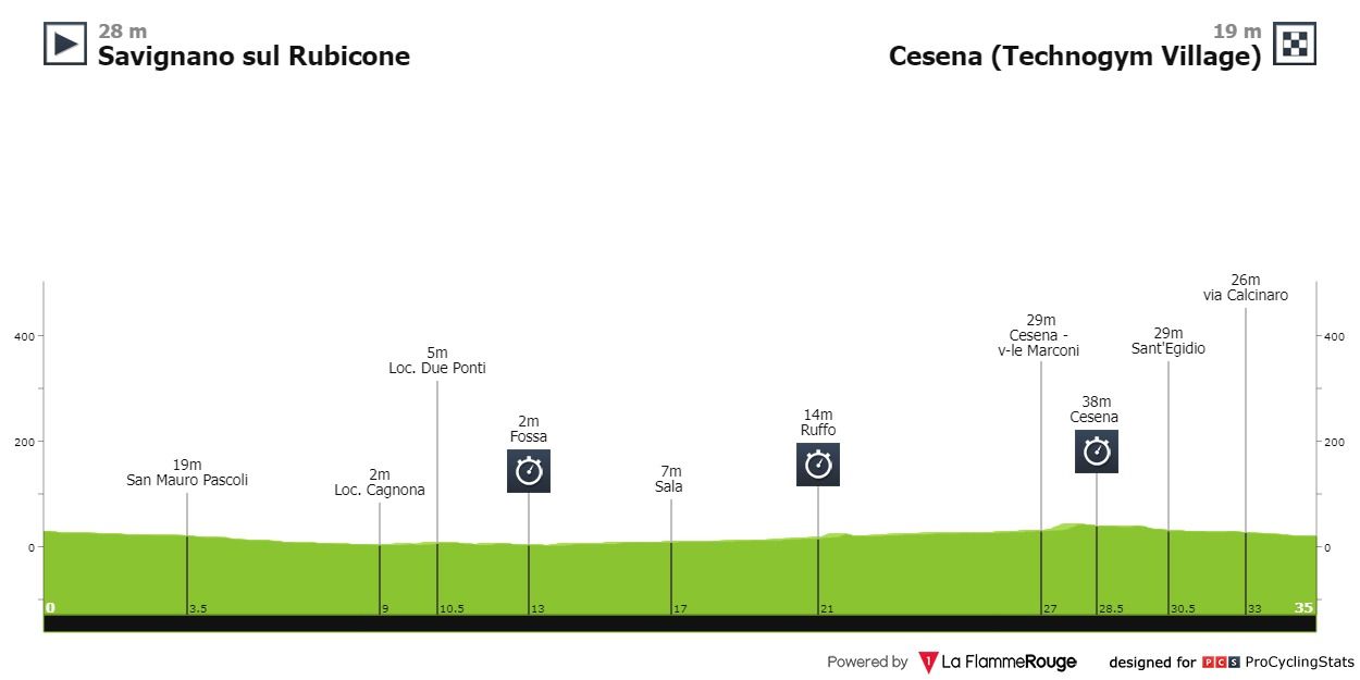 Este domingo, espera-nos um longo contrarrelógio plano com 35 quilómetros. Algumas curvas exigem alguma técnica e muito cuidado, uma vez que se prevê muita chuva, principalmente na fase inicial.