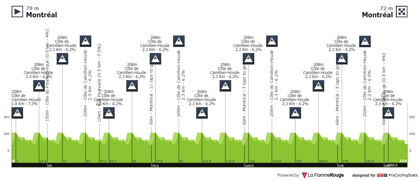 A receita não muda muito. Um circuito exigente de 12.2 quilómetros situado no Parc du Mont-Royal, local com um legado histórico no ciclismo. Este é o mesmo circuito que testemunhou as vitórias de Eddy Merckx e Geneviève Gambillon com a camisola arco-íris em 1974, e o triunfo olímpico de Bernt Johansson sobre Giuseppe Martinelli em 1976.