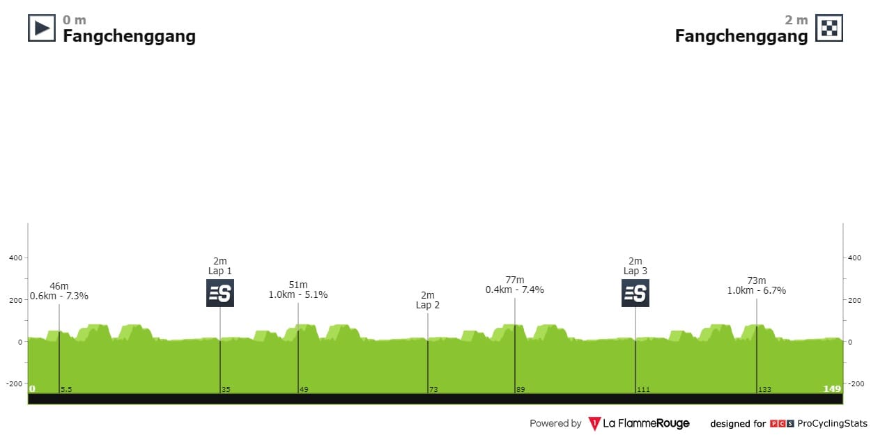 Etapa 1 — Um circuito na cidade de Fangchenggang. A primeira etapa ao sprint.