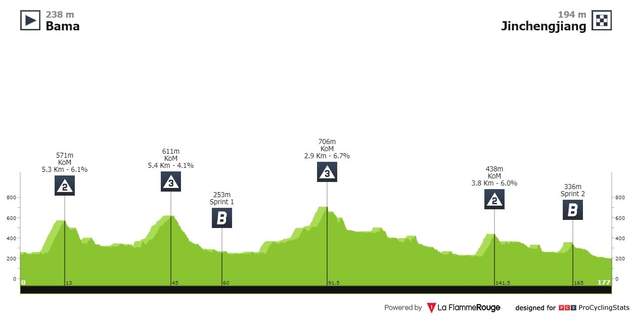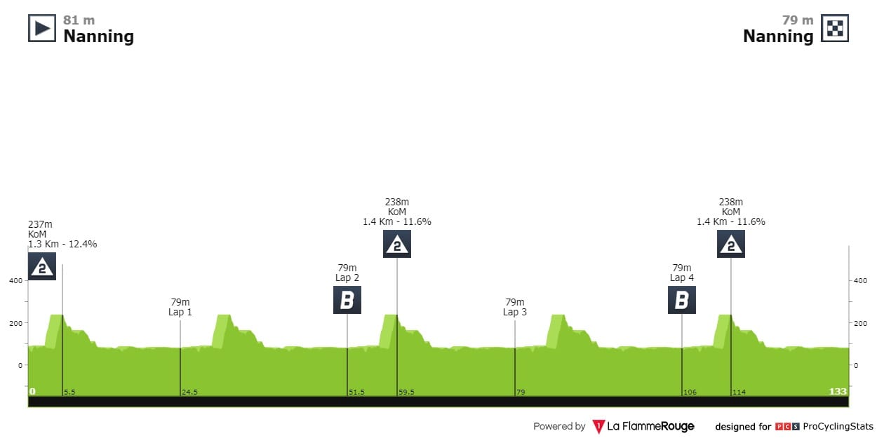 Etapa 6 — Mais um circuito, agora a fechar a prova. Circuito esse que será na cidade de Nanning e que contará com uma segunda categoria bem durinha. Cerca de quilómetro e meio a 11.6%.