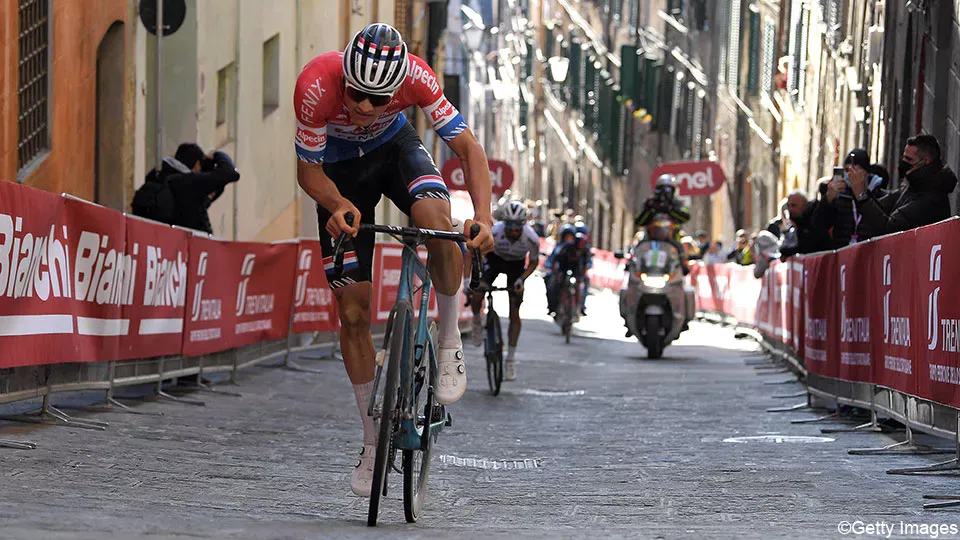 Estes setores de gravel têm vindo a ser uma vantagem para alguns ciclistas de outras modalidades que não a de estrada, como Tom Pidcock, Mathieu van der Poel, ou Wout van Aert, mas a via de Santa Caterina sempre foi o momento de decisão para os puncheurs como Julian Alaphilippe.