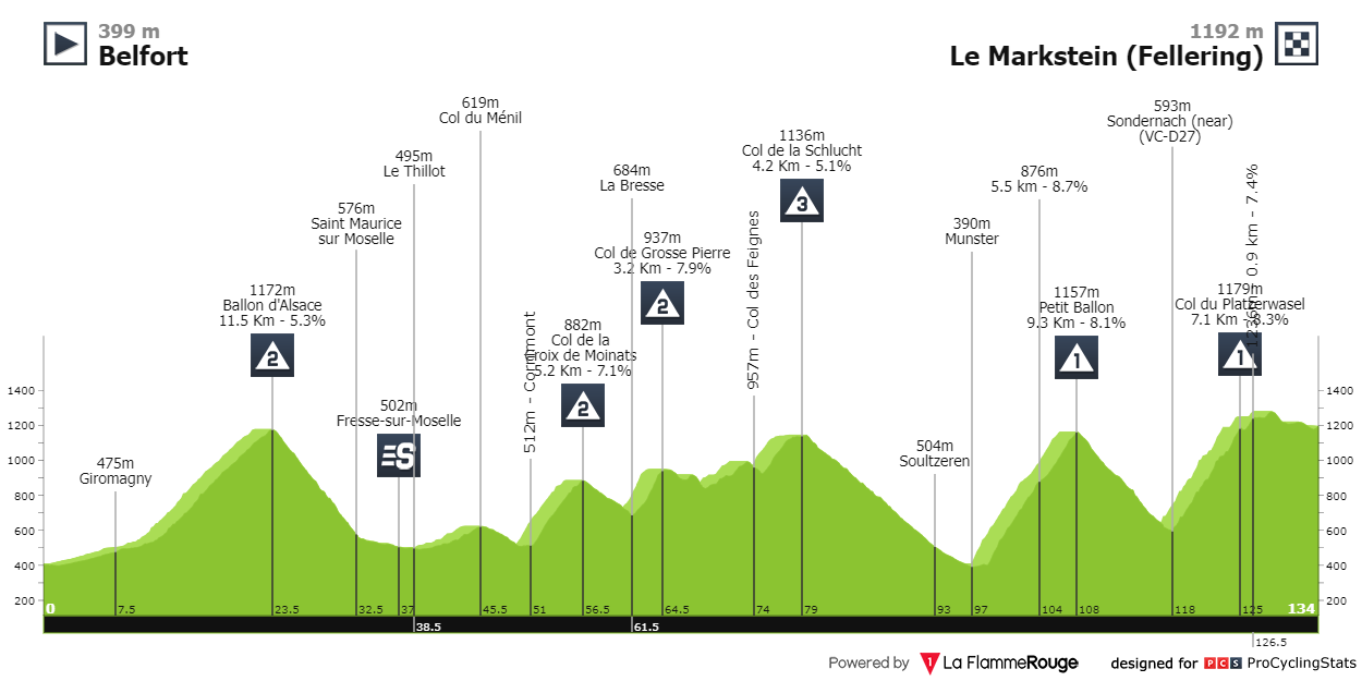 Etapa 5 — Primeira etapa de montanha digna desse nome mas com a meta a ser em terreno plano. De salientar o Col de Marie Blanque com os últimos 4.8km a 10.5%.