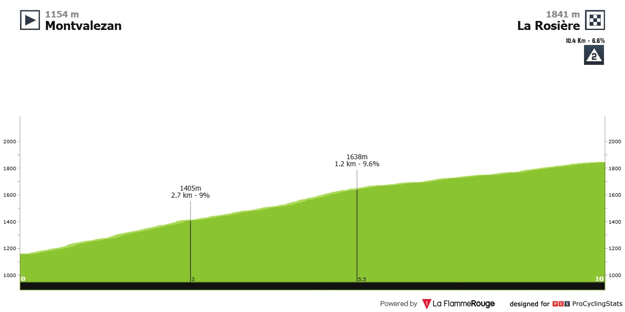Etapa 5b (ITT) — Sendo dupla jornada aqui está a segunda parte. Uma crono-escalada de 10,4km a 6,6%.