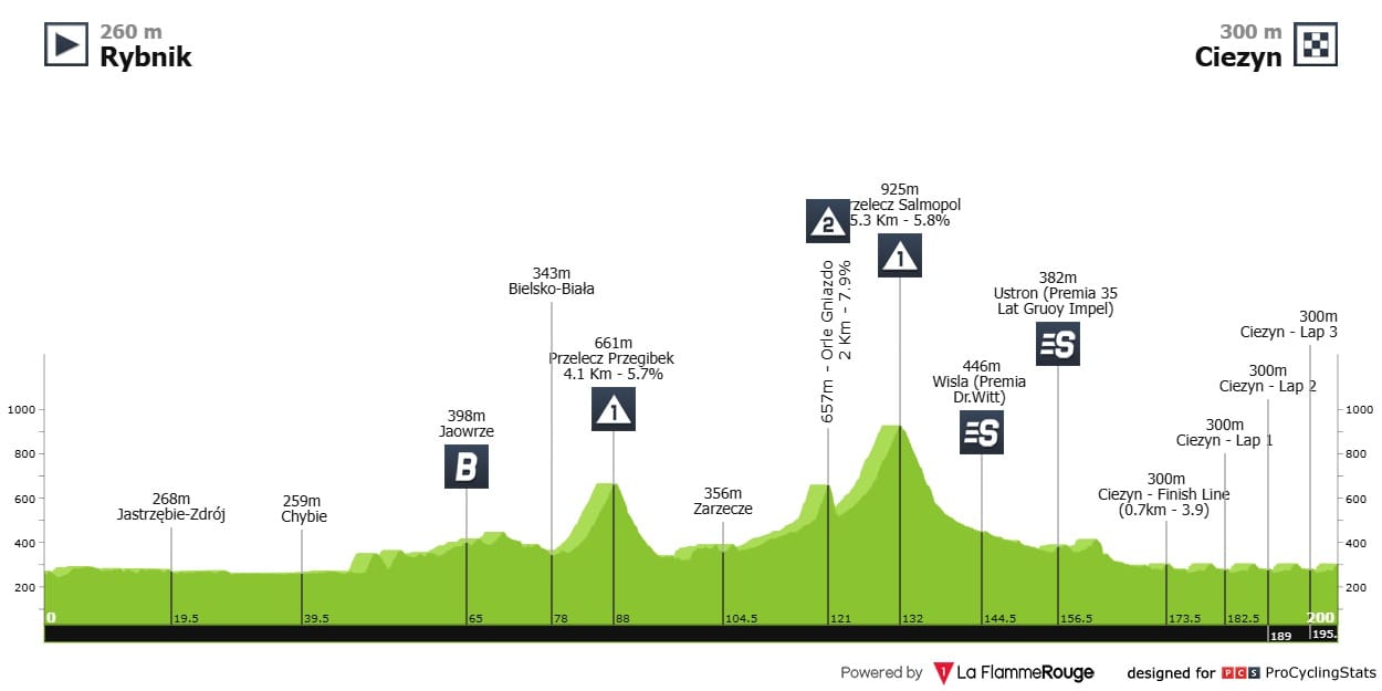 Etapa 4 — Mais uma etapa longa e mais uma etapa onde os sprinters poderão voltar a sorrir. Apesar de três dificuldades a meio da tirada, o cume da subida de Przelecz Salmopol fica a quase 70 quilómetros da meta. E apesar do final ser em falso plano, não deve haver grandes problemas para os mais velozes.